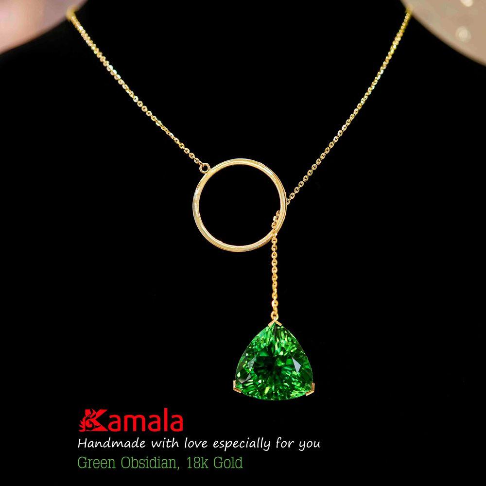 Dây chuyền Vàng 18K đính Đá Obsidian xanh lá