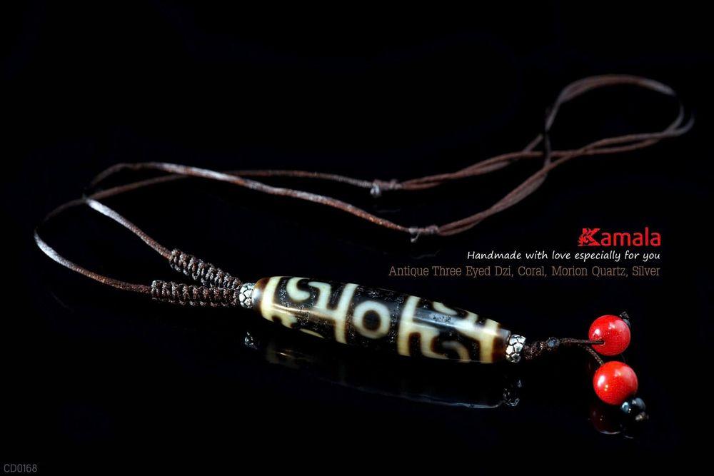 Dây cổ Dzi 3 mắt kích thước (54x12.5li) phối cùng 2 viên san hô đỏ, đệm bạc 925
