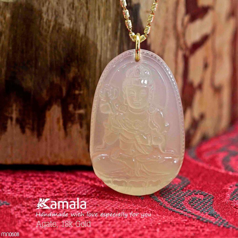 Mề đay Agate trắng hình Phật Đại Thế Chí Bồ Tát, kích thước (37x24 li), vàng 18k, đã được ban phúc gia trì bởi một vị Lama tôn quý vùng Himalaya với năng lượng tràn đầy yêu thương, bình an và trí tuệ.
