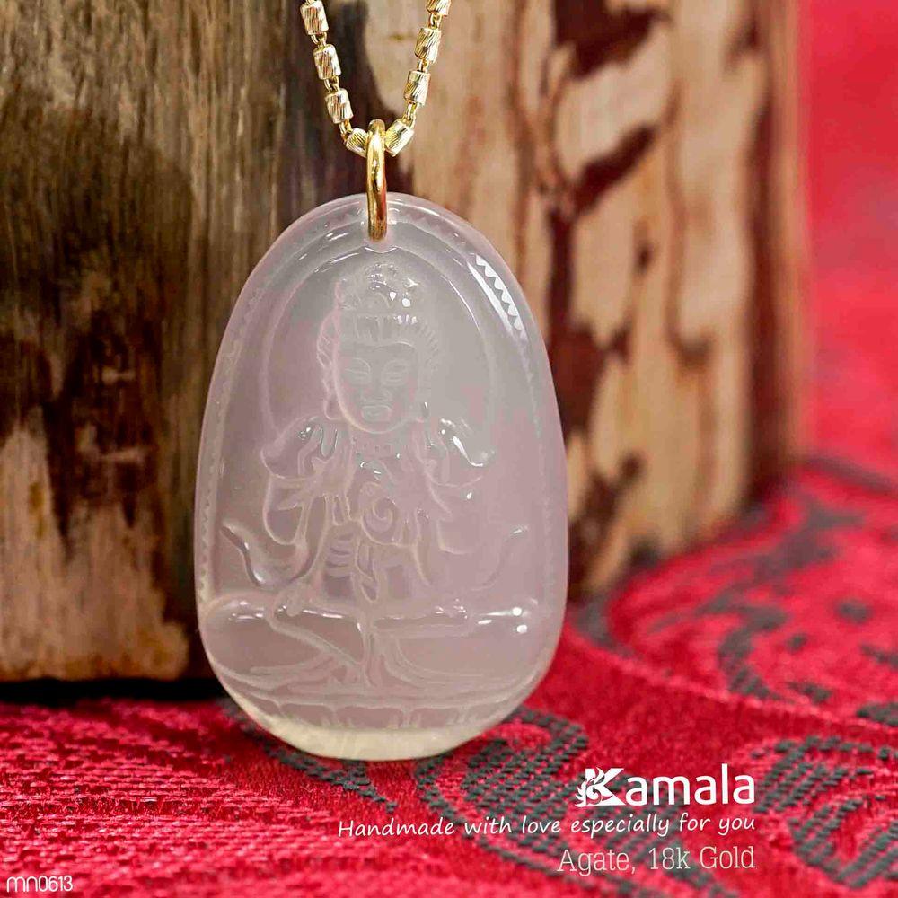 Mề đay Agate trắng hình Đức Phật Đại Nhật Như Lai, kích thước (36x23 li), vàng 18k, đã được ban phúc gia trì bởi một vị Lama tôn quý vùng Himalaya với năng lượng tràn đầy yêu thương, bình an và trí tuệ.
