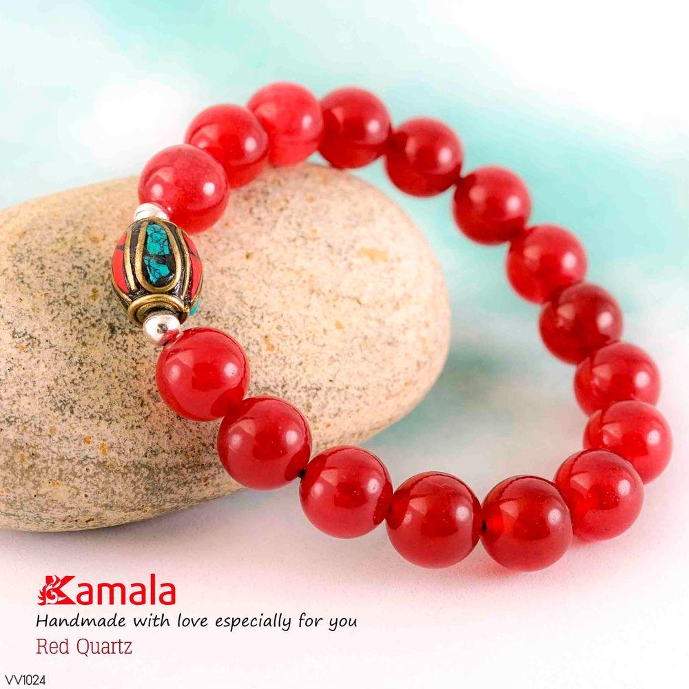 Vòng tay Thạch anh đỏ phối Hạt trang trí Tibet