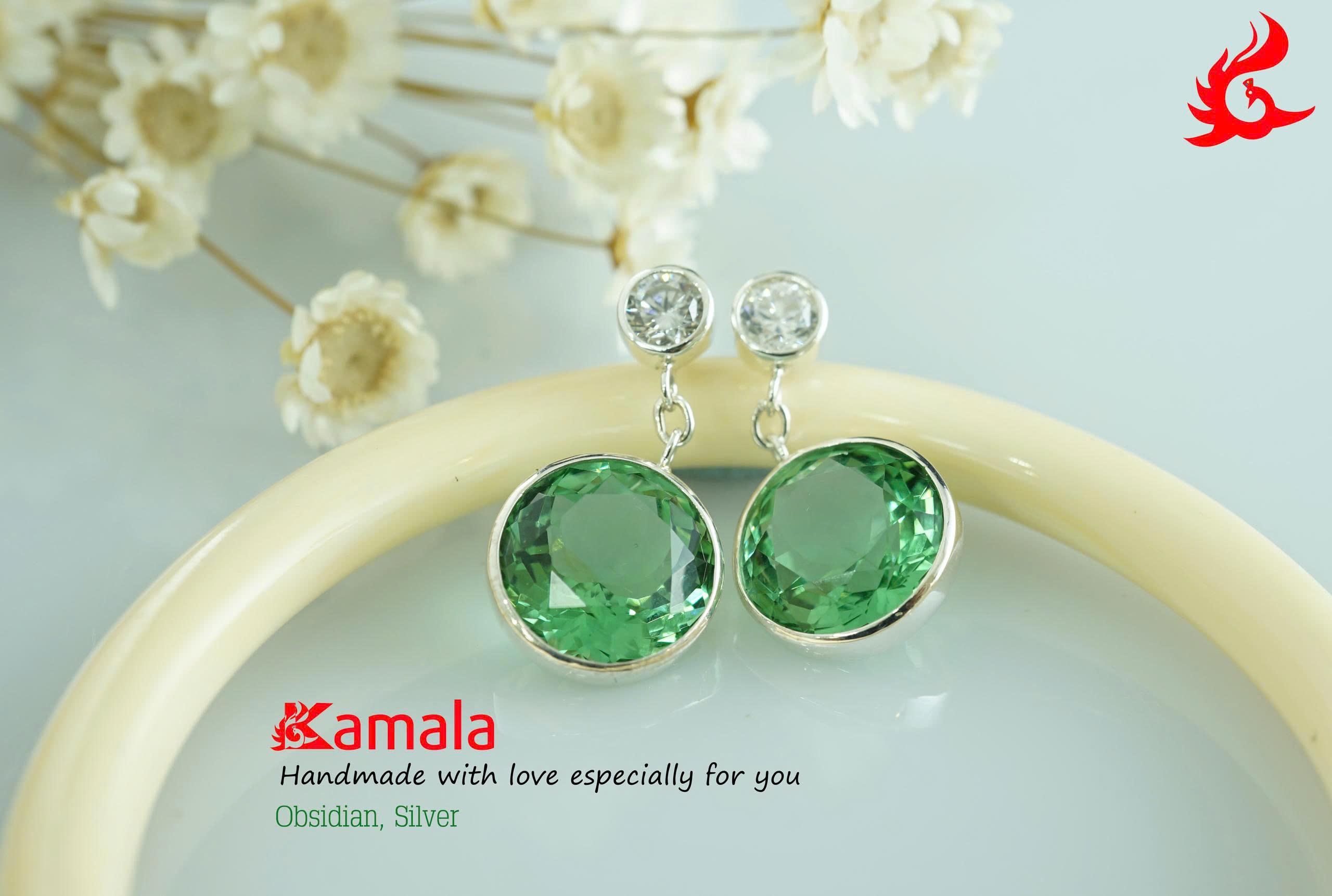 Hoa tai Obsidian xanh lá Bạc 925